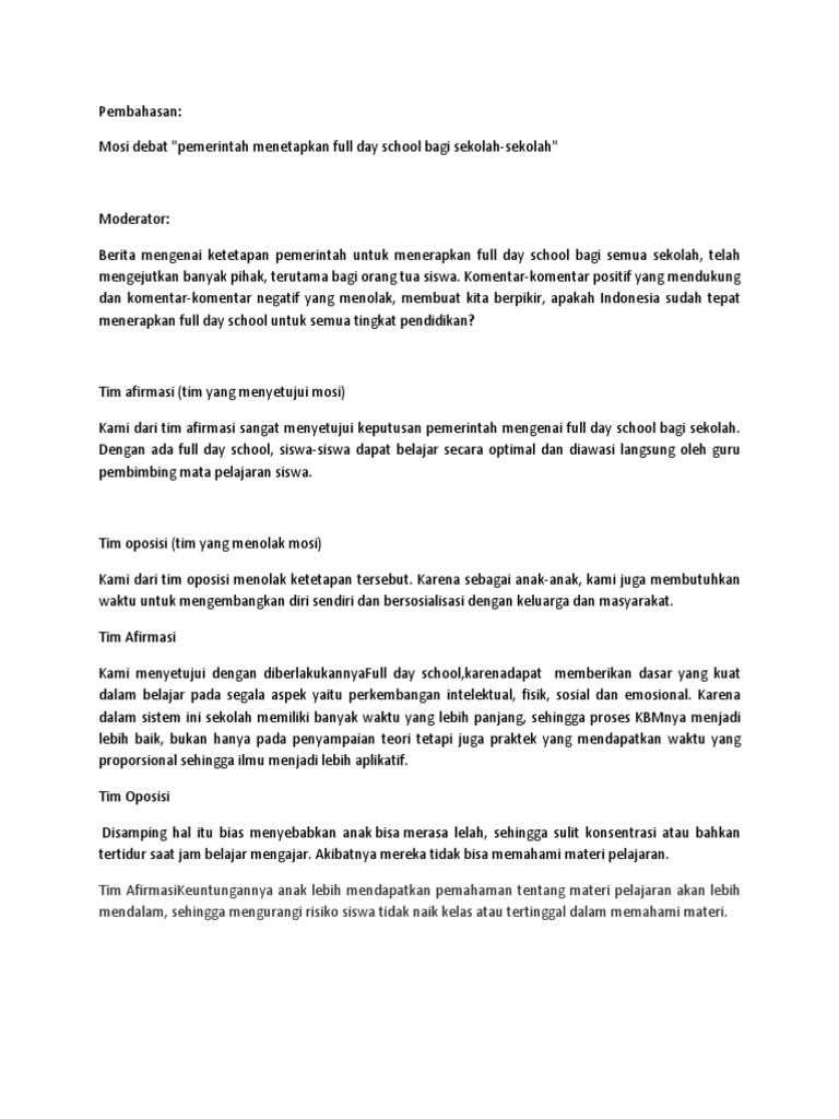 Contoh Teks Debat Lengkap dengan Unsur-unsurnya. Contoh Teks Debat Tentang Kebijakan Sekolah Tatap Muka Moderator. Sebenarnya masih ada teks untuk pihak lain.